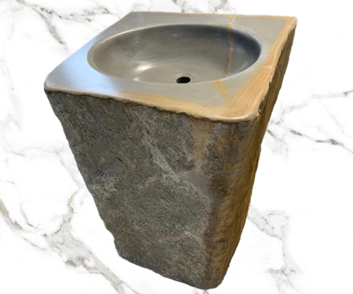 Si tratta di un “pezzo unico”, tendente al grigio in pietra Arenaria di Muggia, un materiale composto da sabbia derivante dall’erosione di rocce di origine vulcanica risalente a 50 milioni di anni fa. Questo lavabo, disponibile in quantità limitata, è nato con lo scopo di dare un senso di unicità al bagno, un prodotto di valore assoluto per differenziarlo dai tipici bagni e colpire chiunque ad ogni ingresso.